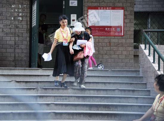 朝阳群众在帮助老人下台阶。图/法制晚报